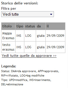 revisioni di ogni singolo contenuto per poter in caso tornare ad una versione precedente o semplicemente per visualizzare lo storico.